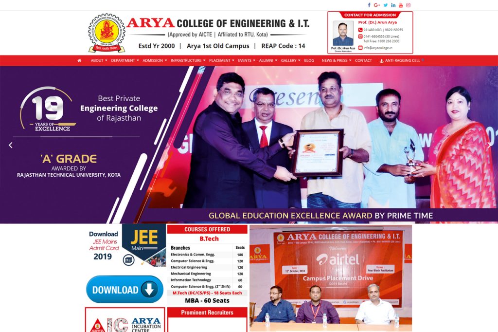 Arya College of Engineering & I.T. (ACEIT), Kukas, Jaipur Established in Year 2000 is among the foremost of institutes of national significance in higher technical education and AICTE, New Delhi Approved and Affiliated with Rajasthan Technical University, Kota in Rajasthan. It is commonly known as “ARYA 1st OLD CAMPUS” and “ARYA 1st”. The Institute ranks amongst the best technological institutions in the State and has contributed to all sectors of technical & professional development. It has also been considered a leading light in the area of education and research. The college aims to exhibit dedication and honesty towards building the embarking future of its students. Arya College has a very positive and bright mission for its students.