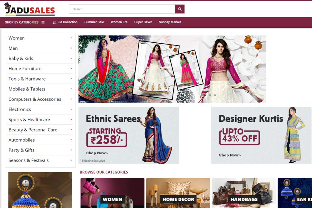 JaduSales is a mainly an E – Commerce marketplace which is cost effective, custom developed and secure. It is all about inviting sellers, then listing products, then supervising orders, then managing payments and then earn. It is a digital hub and well researched commercial plan. It has since diversified into various segments with gadgets and electronics, therefore forming a chunk of it.